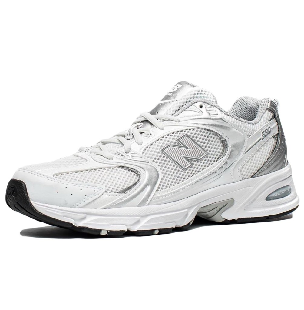 These dad-style kicks are still going strong. The silver + white combo goes with literally everything, from slouchy jeans to workout sets. Bonus: they’re ultra comfy.